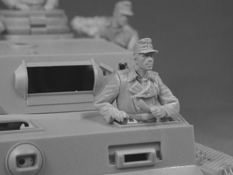 - Conjunto de figuras de tripulación de tanque alemana durante en uniforme de verano 1944, en escala 1/35.