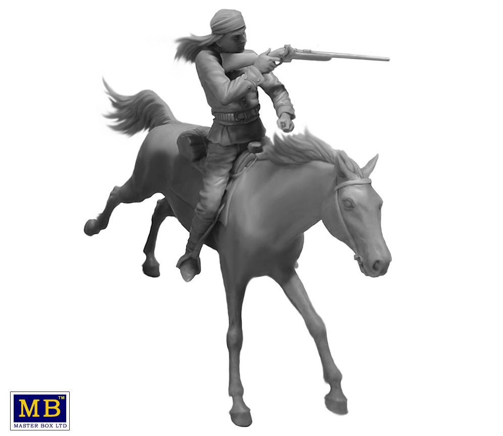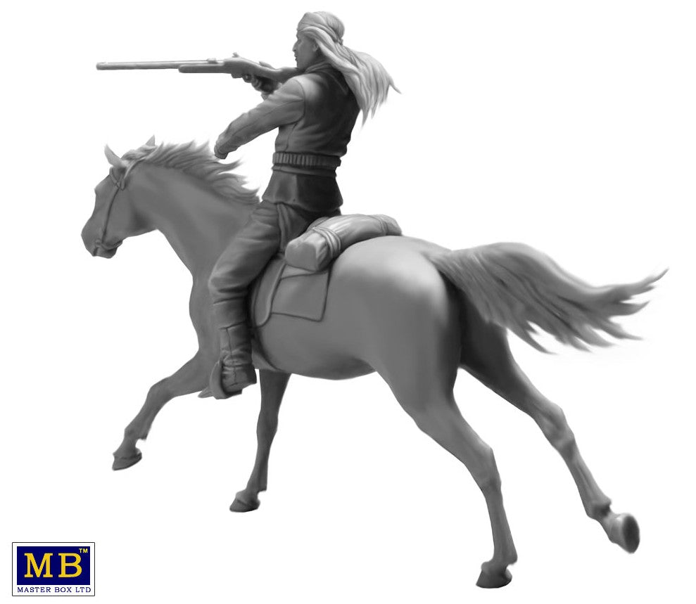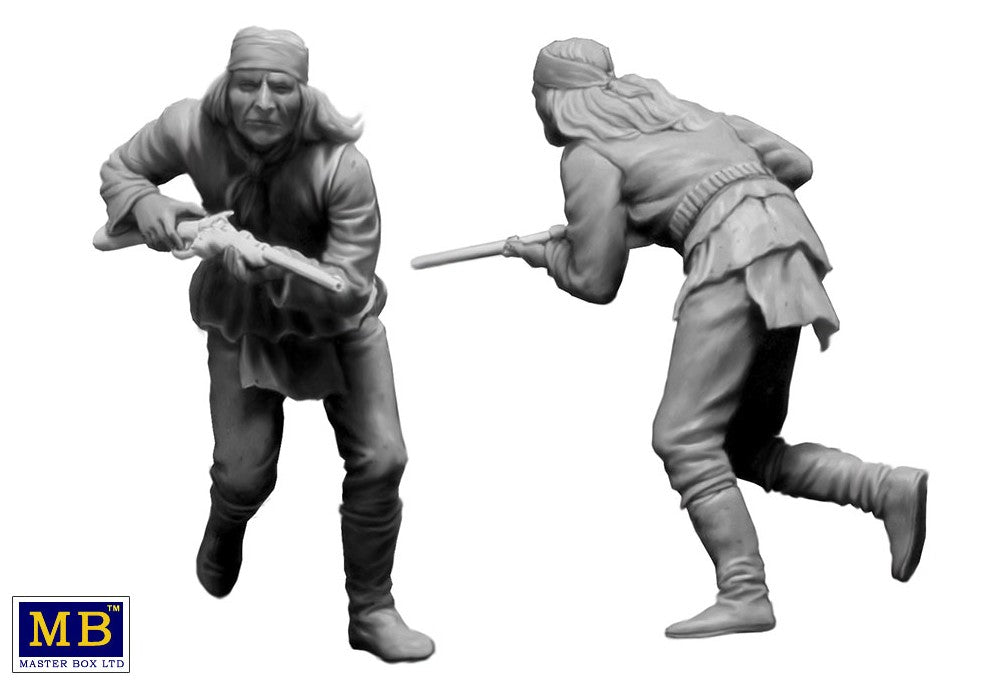 - Conjunto de 2 figuras y un caballo de la serie Guerras Indias, en escala 1/35.