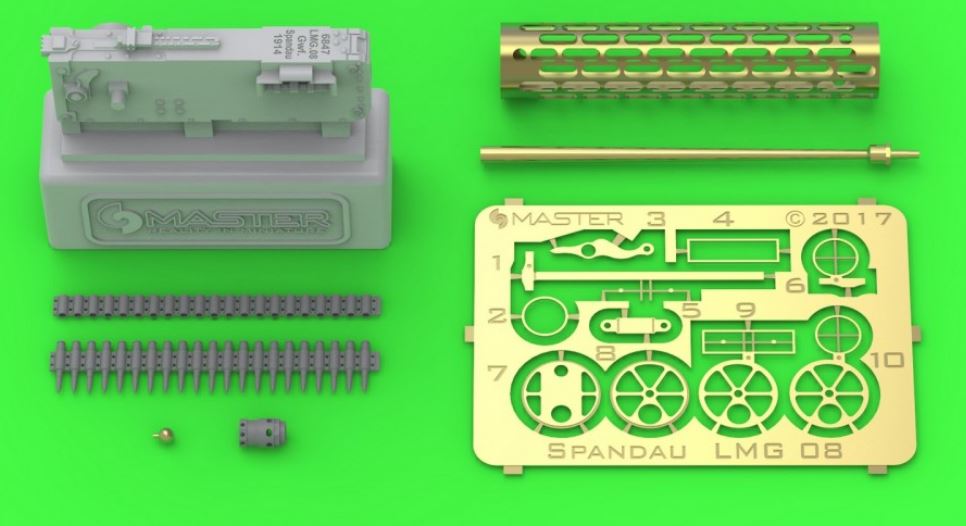 - Set de ametralladora para aviones alemanes de la Primera Guerra Mundial modelo Spandau con chaqueta de refrigeración versión 2, en escala 1/32.