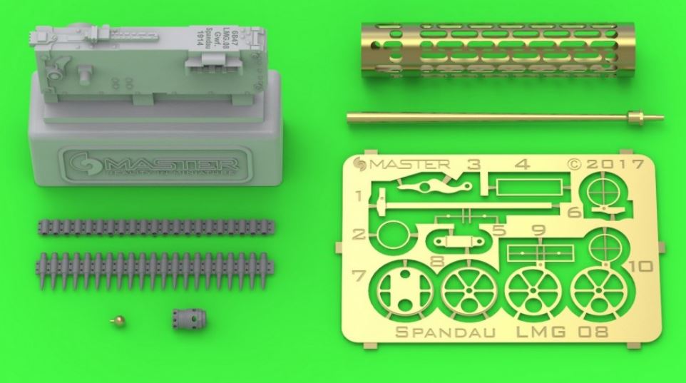 - Set de ametralladora para aviones alemanes de la Primera Guerra Mundial modelo Spandau con chaqueta de refrigeración versión 3, en escala 1/32.