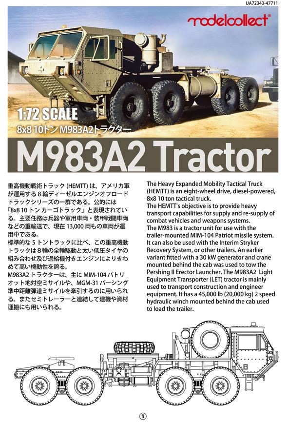 - Modelo de vehículo blindado de transporte pesado norteamericano M983 HEMTT en su versión A2, en escala 1/72.