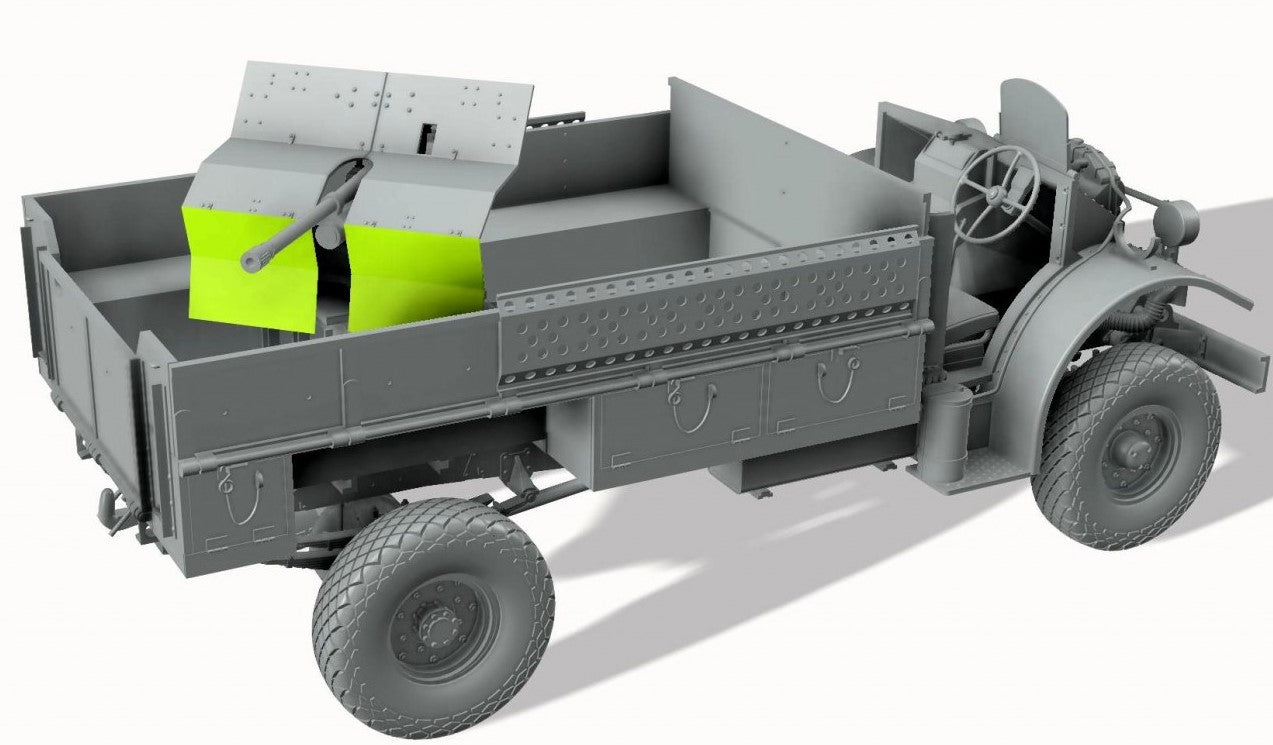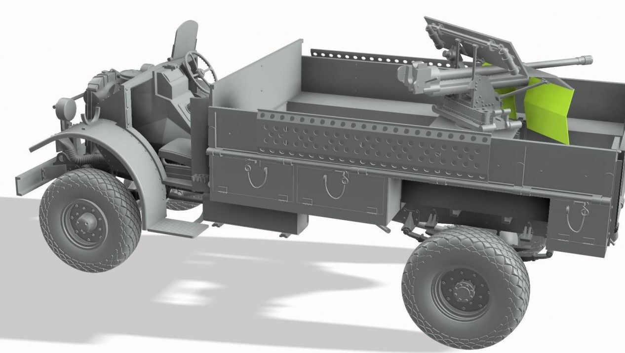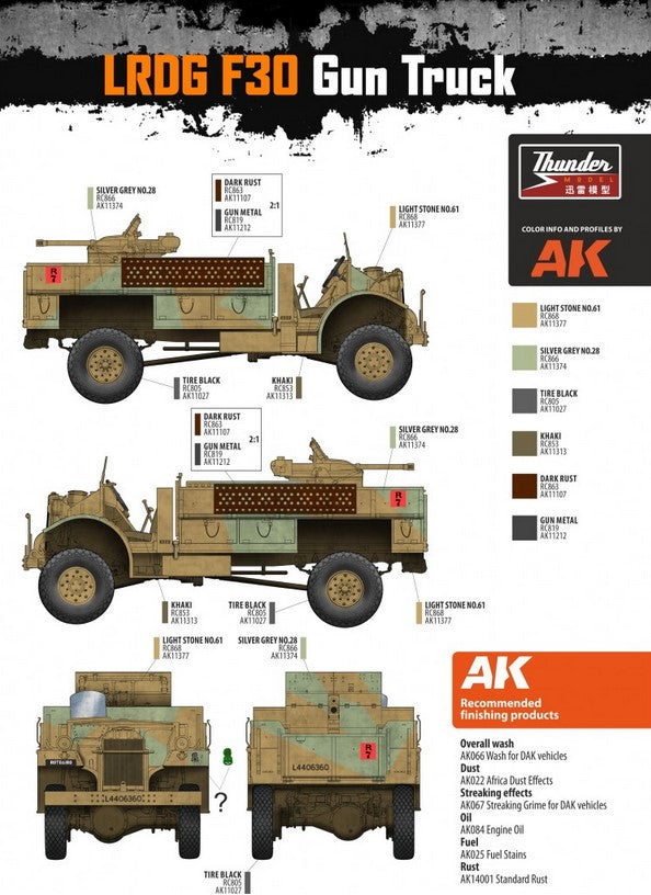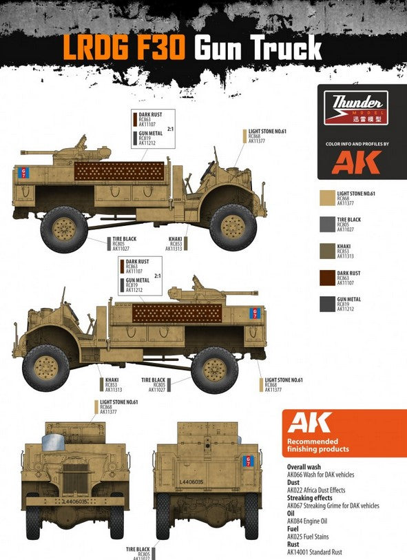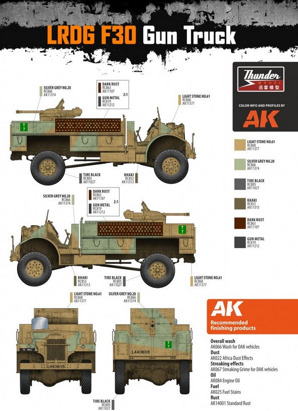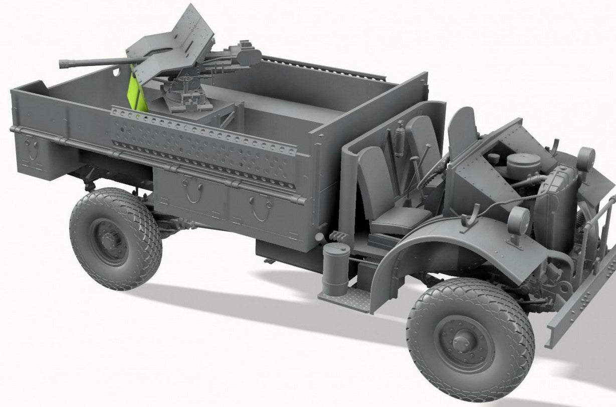 - Modelo de vehículo de transporte ligero de personal británico Patrol Truck F30 que utilizaban las fuerzas británicas del Long Range Distance Group (LRDG) en la campaña del Norte de África, en su versión con cañón Bofors de 37mm, en escala 1/35.