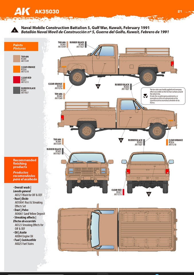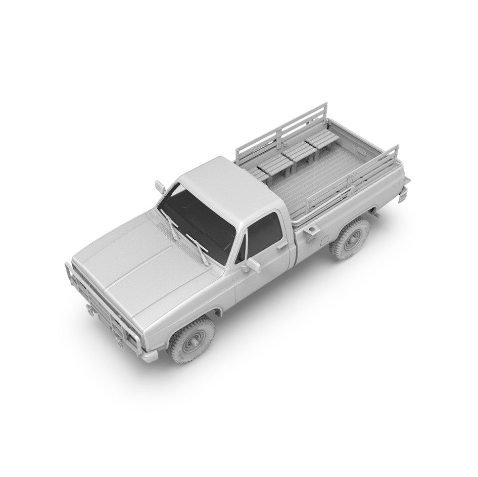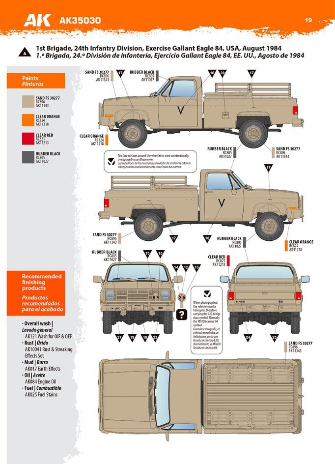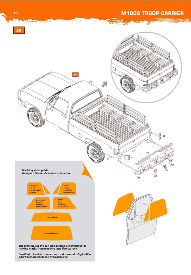 Letonia o Líbano. - Esta referencia representa la versión clásica del camión de carga del vehículo equipada con asientos para tropas en la caja, los cuales pueden montarse en posición plegada o desplegada. La compuerta trasera también puede fijarse en posición cerrada o abierta, o mantenerse móvil. La hoja de calcas contiene marcas para dos vehículos del Ejército de EE. UU., dos de la Marina de EE. UU. y uno de la SFOR, cada uno con un color general o esquema de camuflaje diferente.