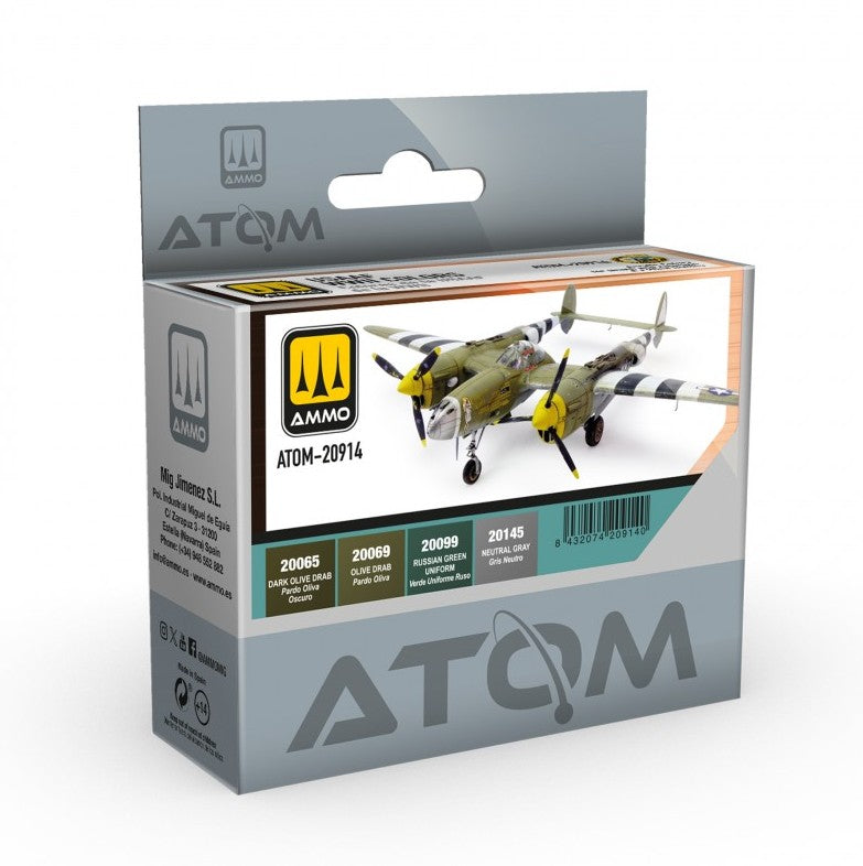 - Pinturas acrílicas de alta calidad especialmente pensadas para representar los colores empleados por la USAAF durante la Segunda Guerra Mundial, en aviones tan conocidos como los B-17 Flying Fortress, P-40 Warhawk o P-47 Thunderbolt y P-51 Mustang entre muchos otros. Este set resuelve los problemas a la hora de elegir los colores para nuestras maquetas, ahorrando un tiempo valioso.