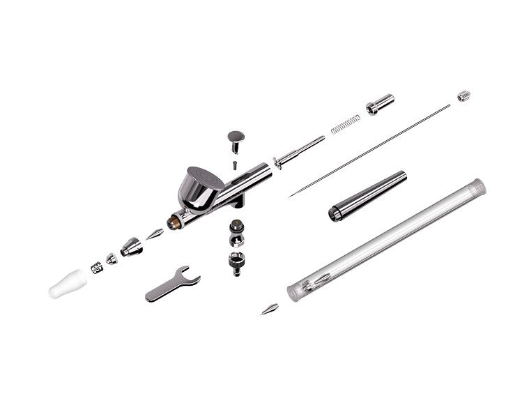 • Incluye un conjunto de aguja/boquilla de 0,3, una copa de 9 ml y un casquillo de conexión rápida a manguera.