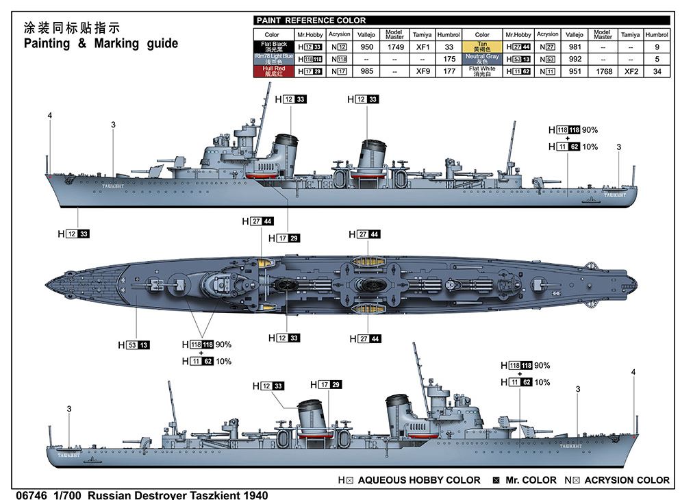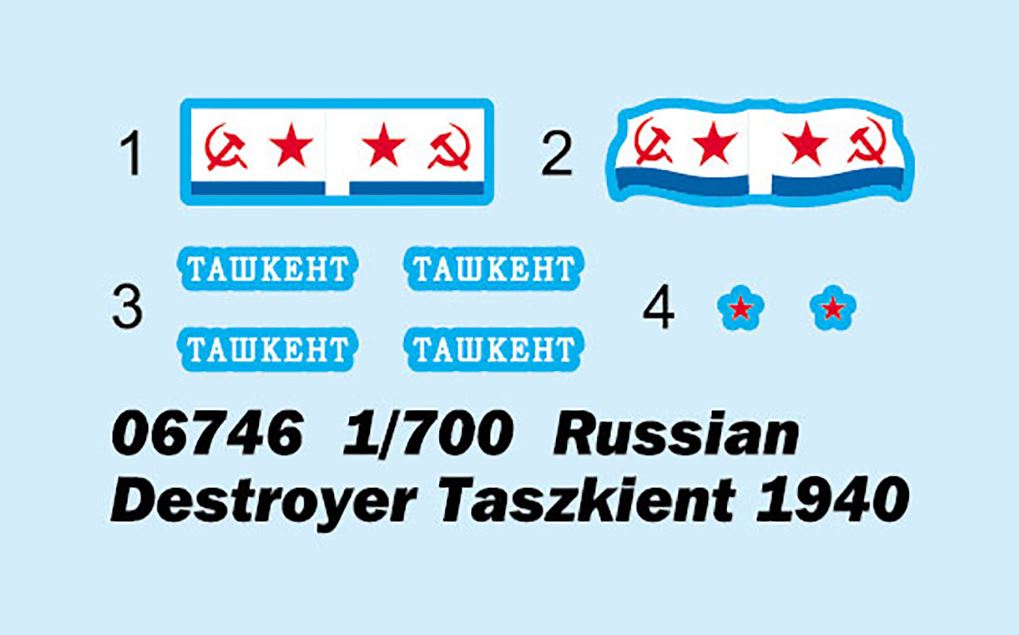 - Modelo de destructor soviético de la Segunda Guerra Mundial Taszkien durante el año 1940, en escala 1/700.