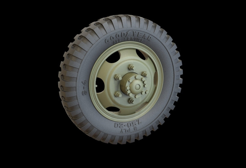 • Set de ruedas Goodyear para camión de transporte norteamericano GMC en escala 1/35.