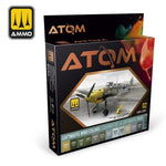 - Set de 12 colores ATOM con base agua, de alta calidad y especialmente seleccionados para representar los camuflajes empleados por la Luftwaffe durante toda la Segunda Guerra Mundial.
