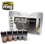 - Set de 5 colores para envejecer todo tipo de zonas de depósitos y zonas de mantenimiento de vías de ferrocarril.