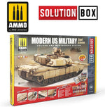 • En la caja no sólo encontrarás las pinturas, productos de envejecido y pinceles necesarios, sino también el libro Modern US Military Sand Scheme SOLUTION BOOK, una completa guía de más de 60 páginas que explica cómo crear el esquema de arena en los vehículos militares estadounidenses modernos.