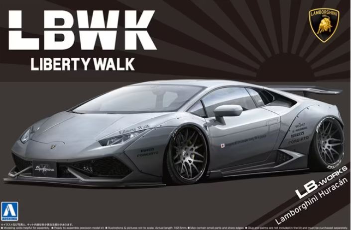 - Maqueta sin montar ni pintar del deportivo Lamborghini Huracan en su versión 2 LB-Works, en escala 1/24.