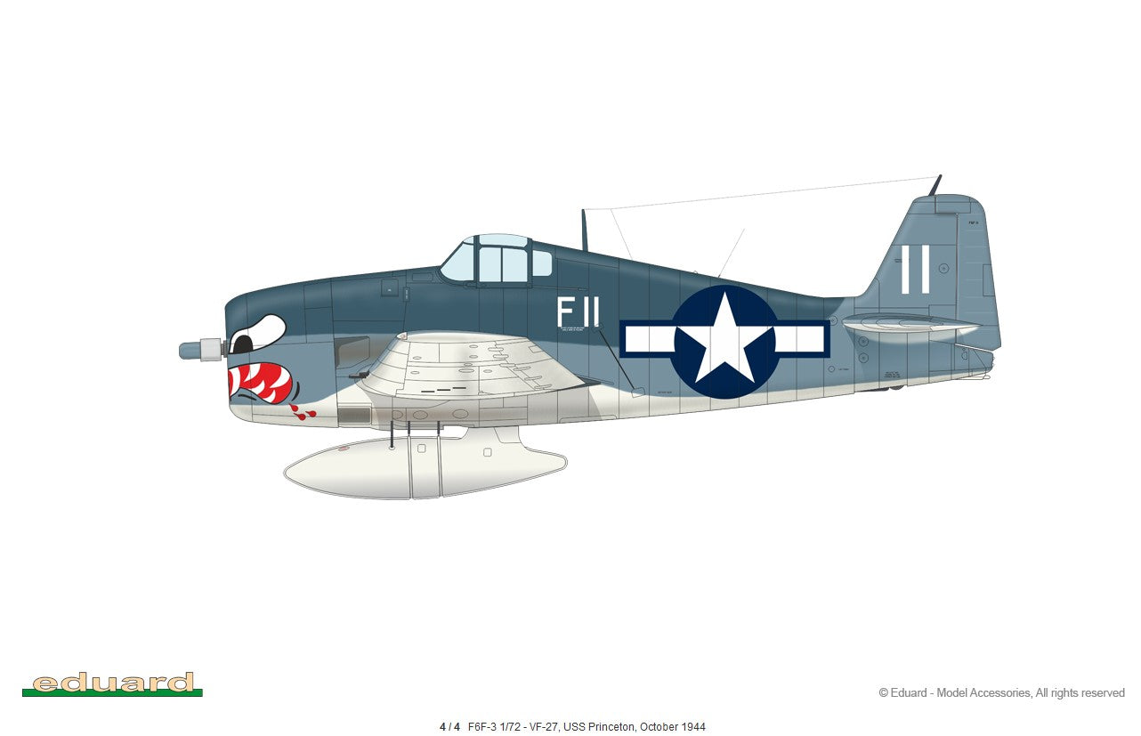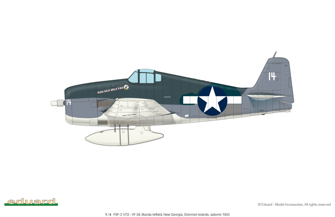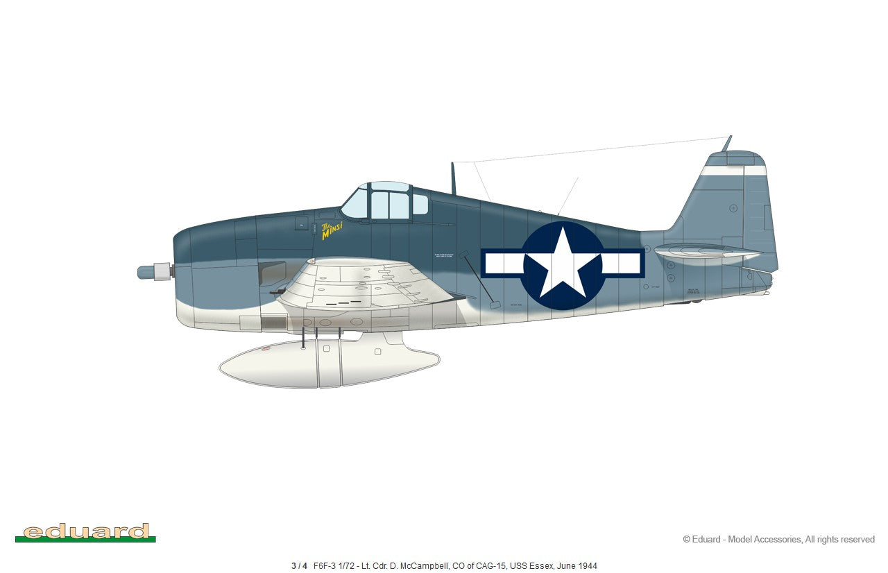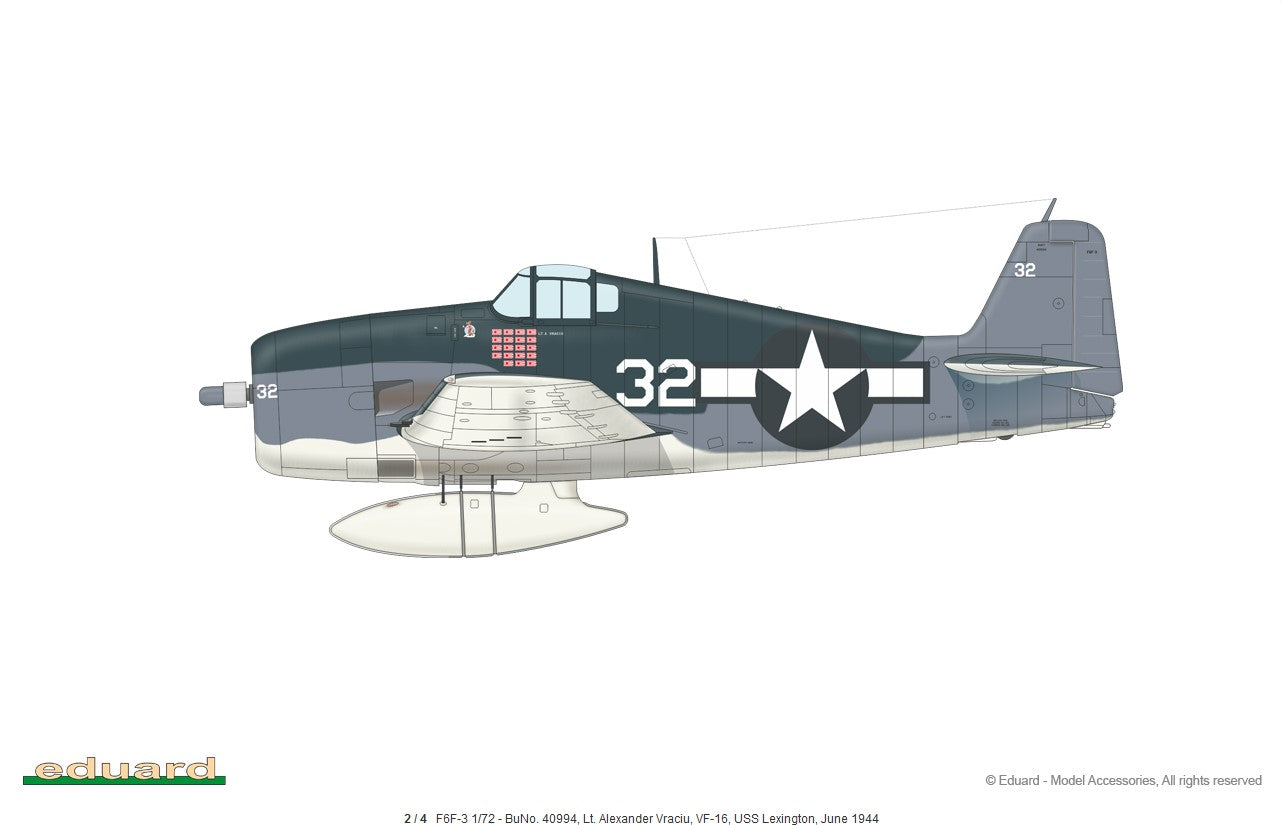 - Modelo del de caza embarcado F6F-3 Hellcat estadounidense, en escala 1/72.