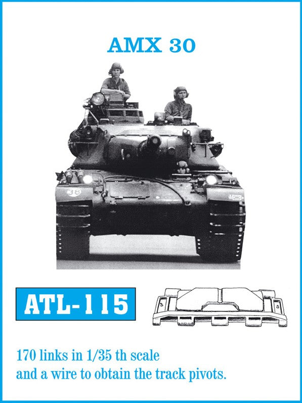 - Set de cadenas de metal para vehículos franceses AMX-30, que estuvo en servicio en España durante muchos años, en escala 1/35.