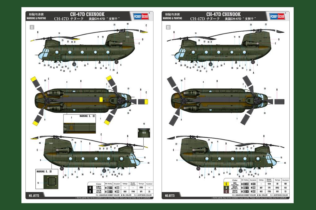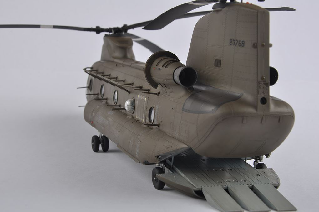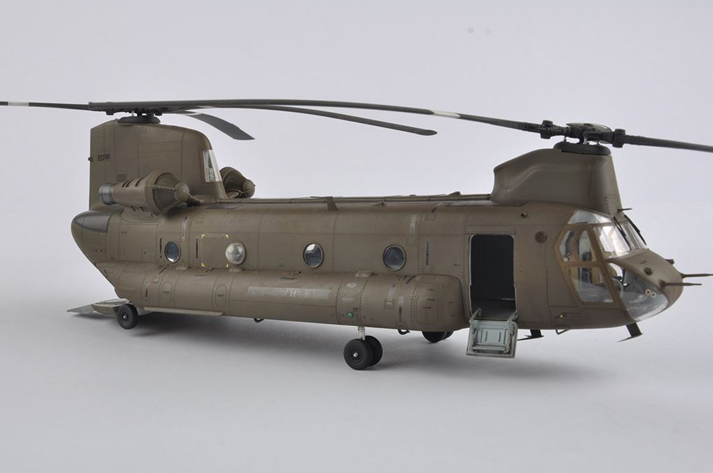 - Modelo de helicóptero norteamericano de transporte CH-47 Chinook en su versión D, el cual está en uso en muchos países del mundo (España entre ellos) en escala 1/48.
