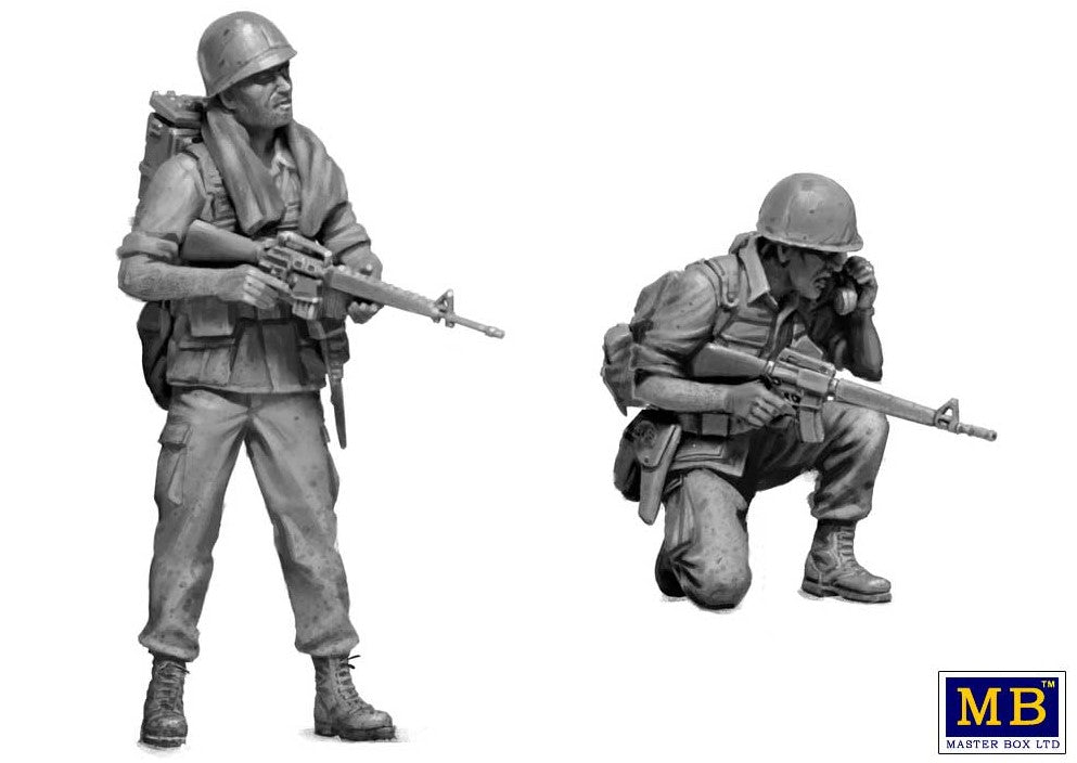 - Conjunto de 4 figuras de soldados norteamericanos durante la Guerra de Vietnam, en escala 1/35.