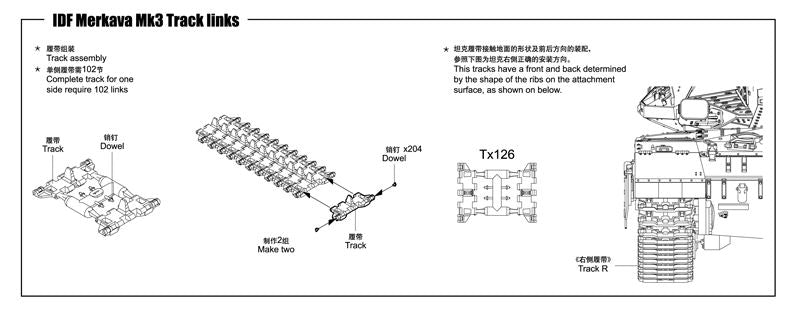 - Set de cadenas para tanque israelí Merkava en su versión Mk.3, en escala 1/35.
