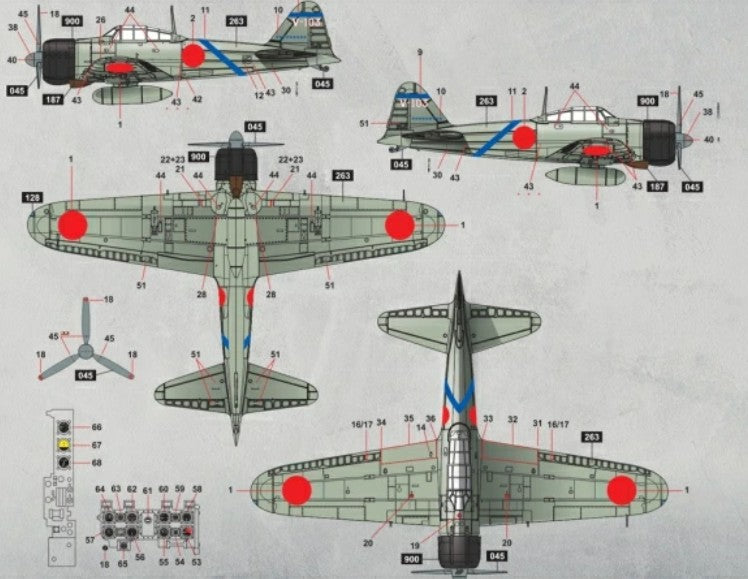 - Modelo del famoso caza japonés Mitsubishi A6M2 Zero, en escala 1/35.