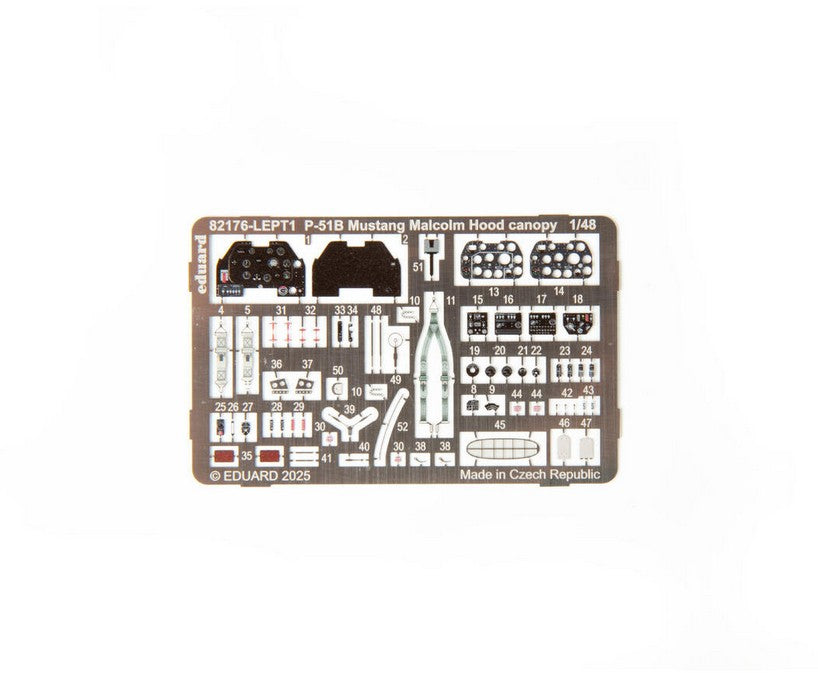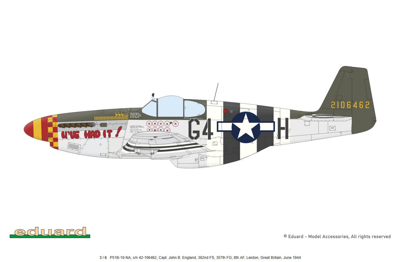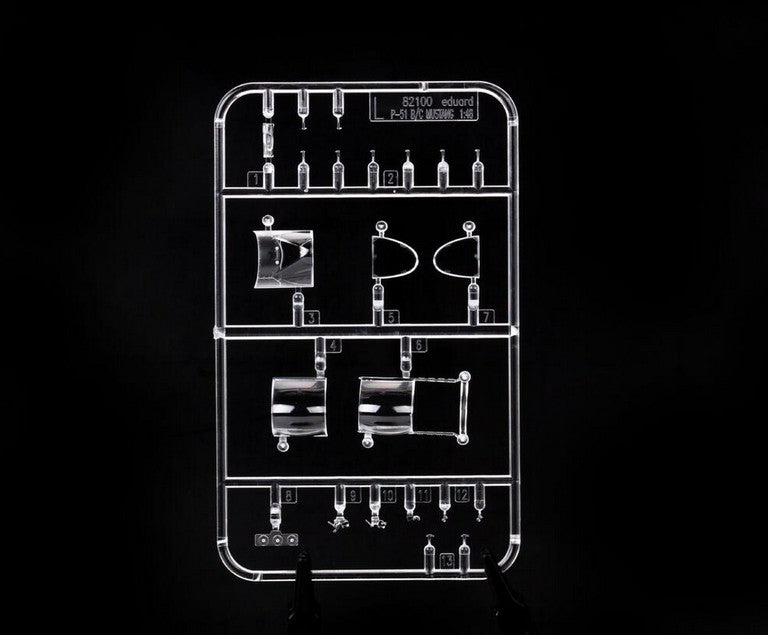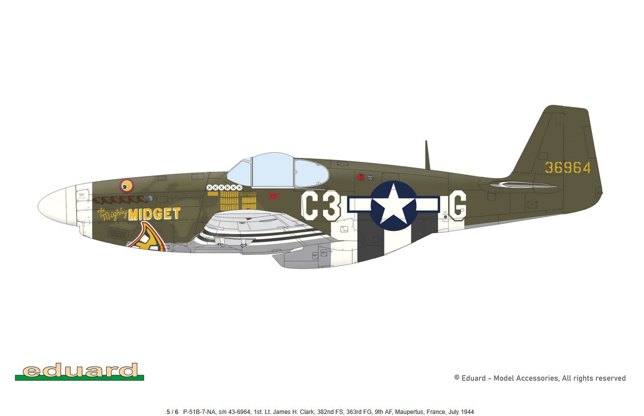 - Modelo del caza estadounidense P-51 Mustang en su versión B con la cabina Malcom Hood, en escala 1/48.