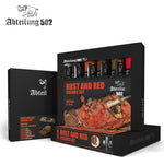- Este set contiene todos los colores necesarios para conseguir efectos de óxido realistas y realzar los detalles de sus modelos con cualquier capa de base roja.
