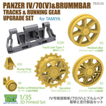 - Set de cadenas y ruedas de tracción para cazacarros alemán Jagdpanzer IV/70(V) y mortero Brummbar, en escala 1/35.