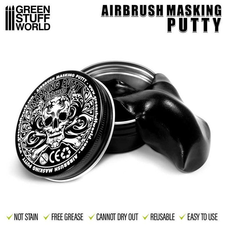 - La masilla de enmascarar para aerógrafo o masking putty es un material flexible que se utiliza en modelismo y pintura para enmascarar zonas que desea proteger de la pintura u otras aplicaciones. Funciona dando forma y aplicando la masilla sobre la superficie deseada, creando una barrera temporal. Una vez pintada, la masilla se retira, dejando unos bordes limpios y nítidos.