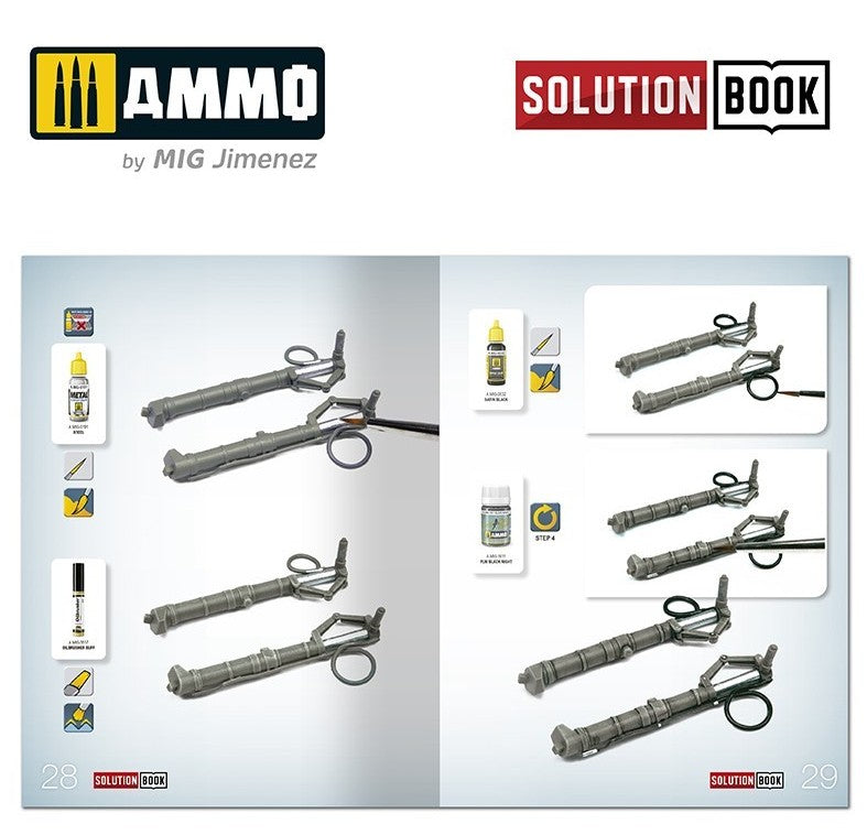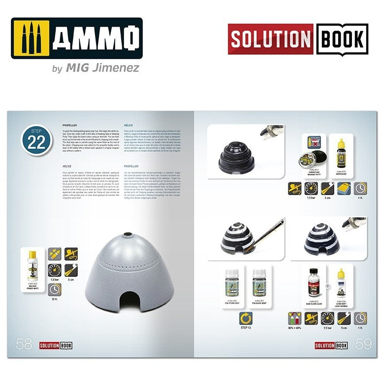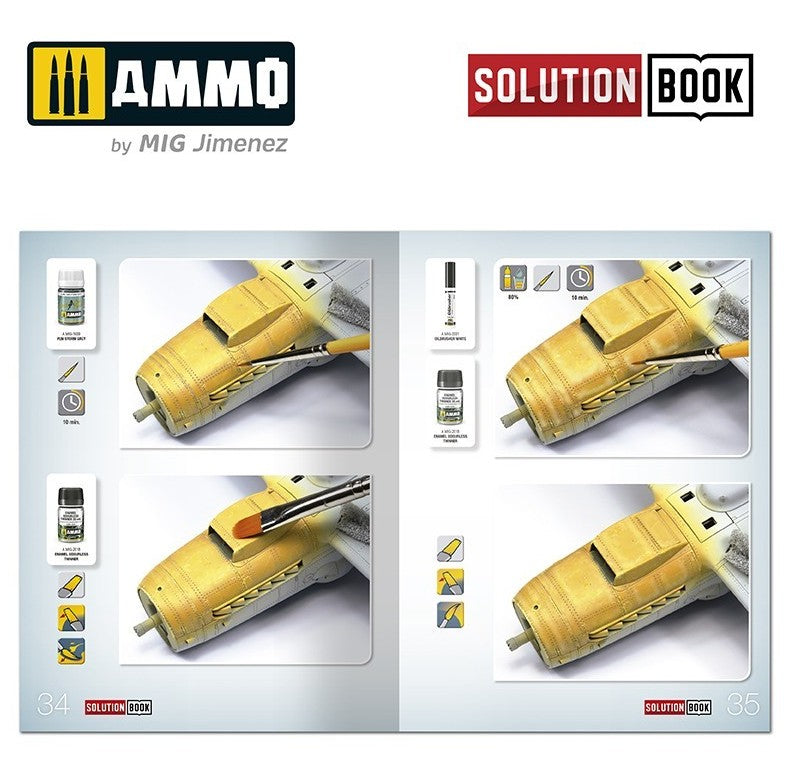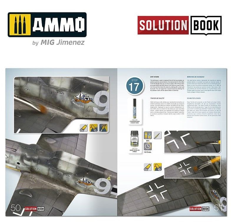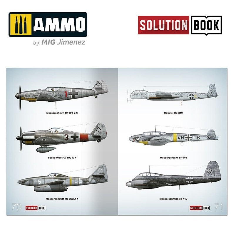 - Es una sencilla guía de 72 páginas fácil de seguir, que explica paso a paso cómo aplicar los colores y efectos más habituales en los aviones de combate alemanes que operaban a mediados de guerra. Con esta guía cualquier modelista puede llegar a obtener efectos y acabados similares a los de los ejemplos que se muestran.
