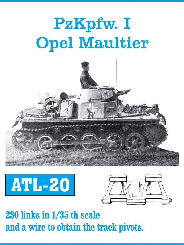 - Set de cadenas de metal para vehículos alemanes Pz-I y Opel Maultier, en escala 1/35.