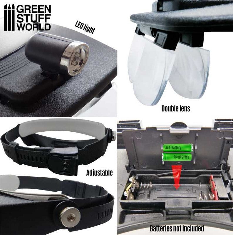 - Las gafas lupa modelismo con lupas e iluminación son herramientas de modelismo esenciales para cualquier persona que se dedique al modelado, las pinturas de modelismo u otras tareas de precisión. Están diseñadas para proporcionar una visión ampliada de objetos o detalles pequeños, facilitando al usuario la visión y el trabajo con ellos. La fuente de luz incorporada mejora aún más la visibilidad, lo que permite trabajar en condiciones de poca luz.