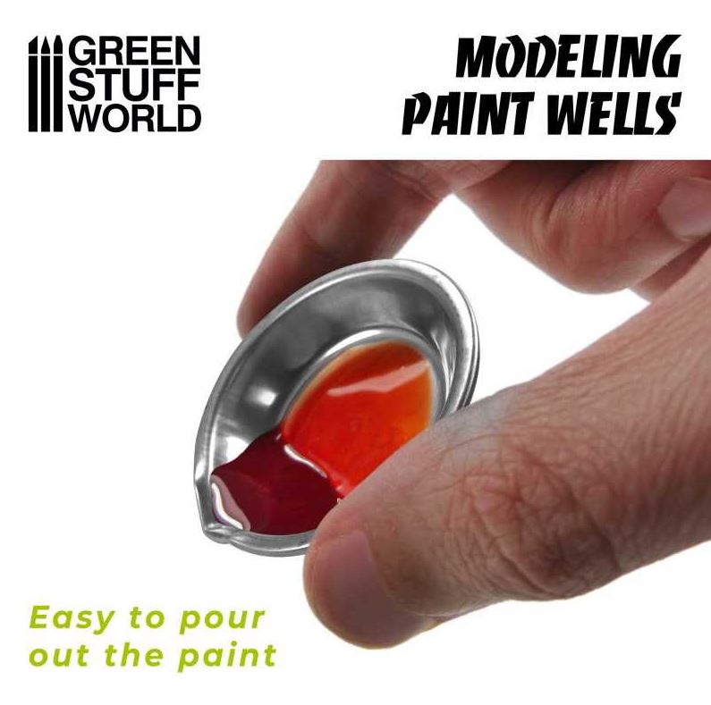 - Set de pozos de aluminio para pintura para mezclas de pintura o para retener pintura durante el proceso de pintado. Se pueden usar solos o como unidades extra.