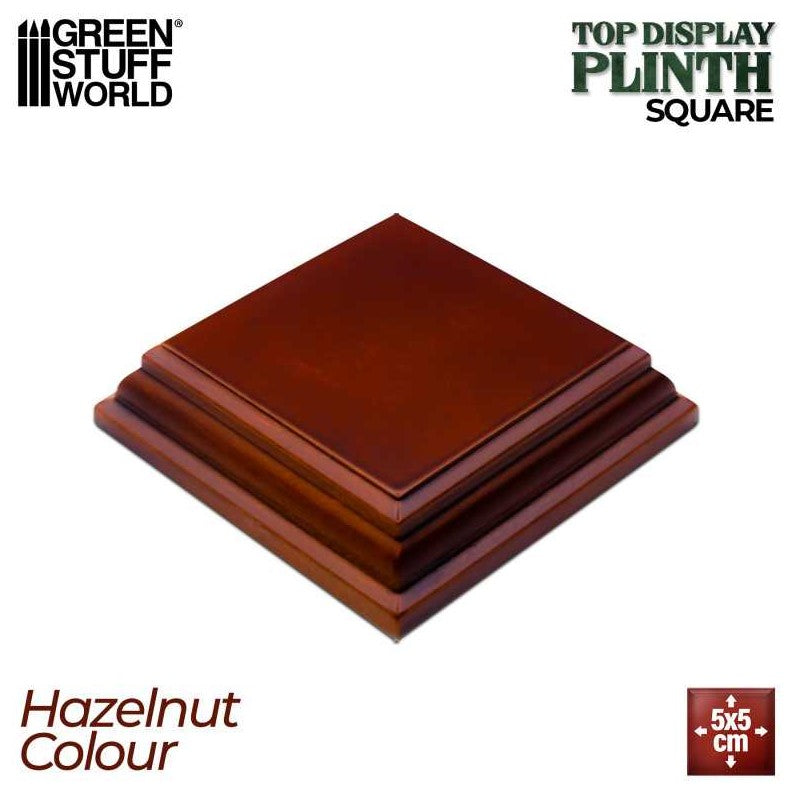 - Peanas de madera o pedestal hechos en DM, ideal para colocar y exhibir tus figuras. La base de la peana está cubierta de una fina moqueta de color verde oscuro.