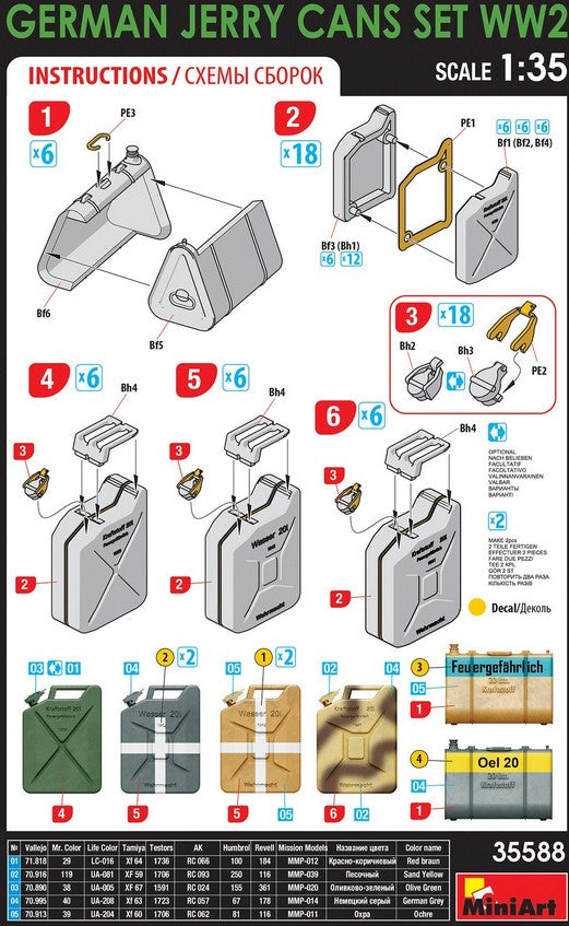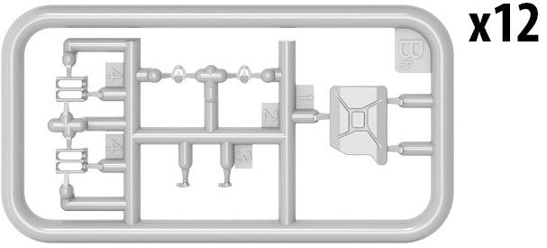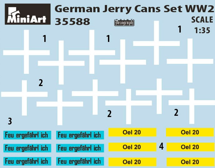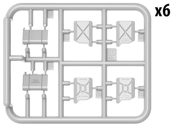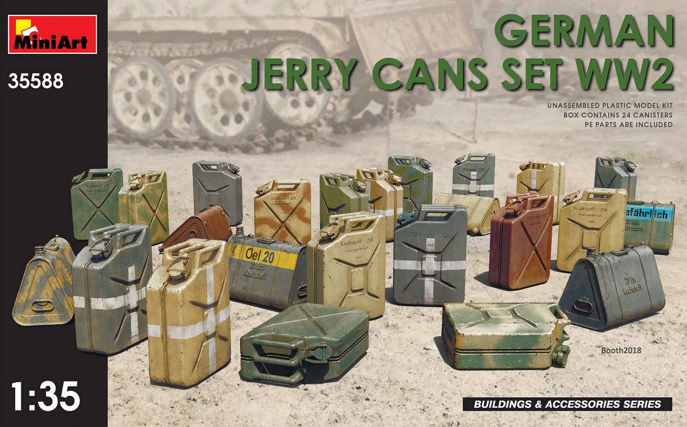 - Conjunto de garrafas y jerry cans usadas por los alemanes durante la Segunda Guerra Mundial, en escala 1/35.