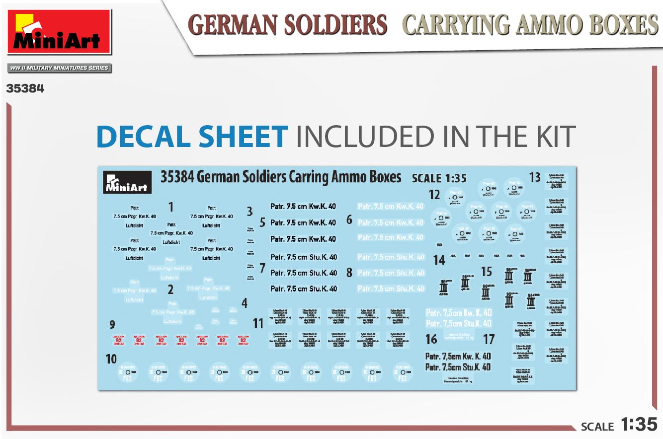 - Conjunto de figuras de soldados alemanes cargando cajas de municiones en escala 1/35.