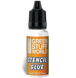 - El pegamento para plantillas (stencils) es un pegamento reposicionable de baja adherencia que mantendrá la plantilla en su lugar mientras se trabaja, sin dejar ningún residuo pegajoso una vez que se retira la plantilla. Pegamento de base acrílico por lo que puede limpiarse y diluirse con agua como si fuera una cola blanca normal. Si el pegamento ya esta seco y se desea quitar se puede usar: alcohol, limpiador de aerógrafo, decapante de pintura, entre otros productos.