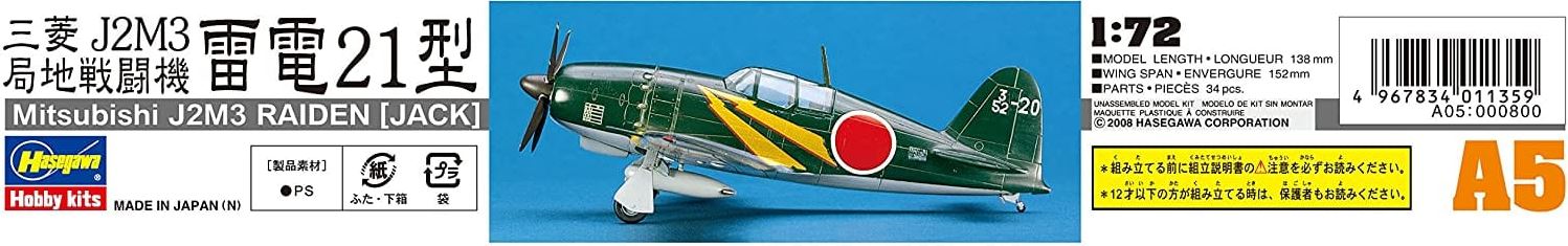 - Modelo de avión de caza japonés J2M3 Raiden (Jack), en escala 1/72.