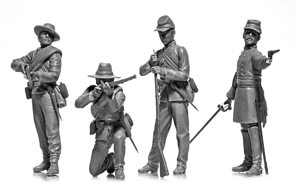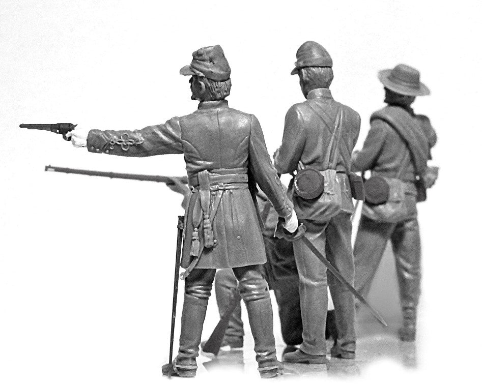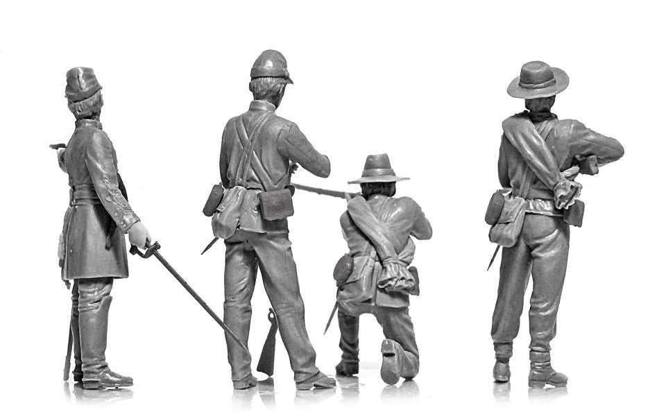 - Modelo de 4 figuras de soldados de infantería confederados durante la Guerra Civil Americana, en escala 1/35.