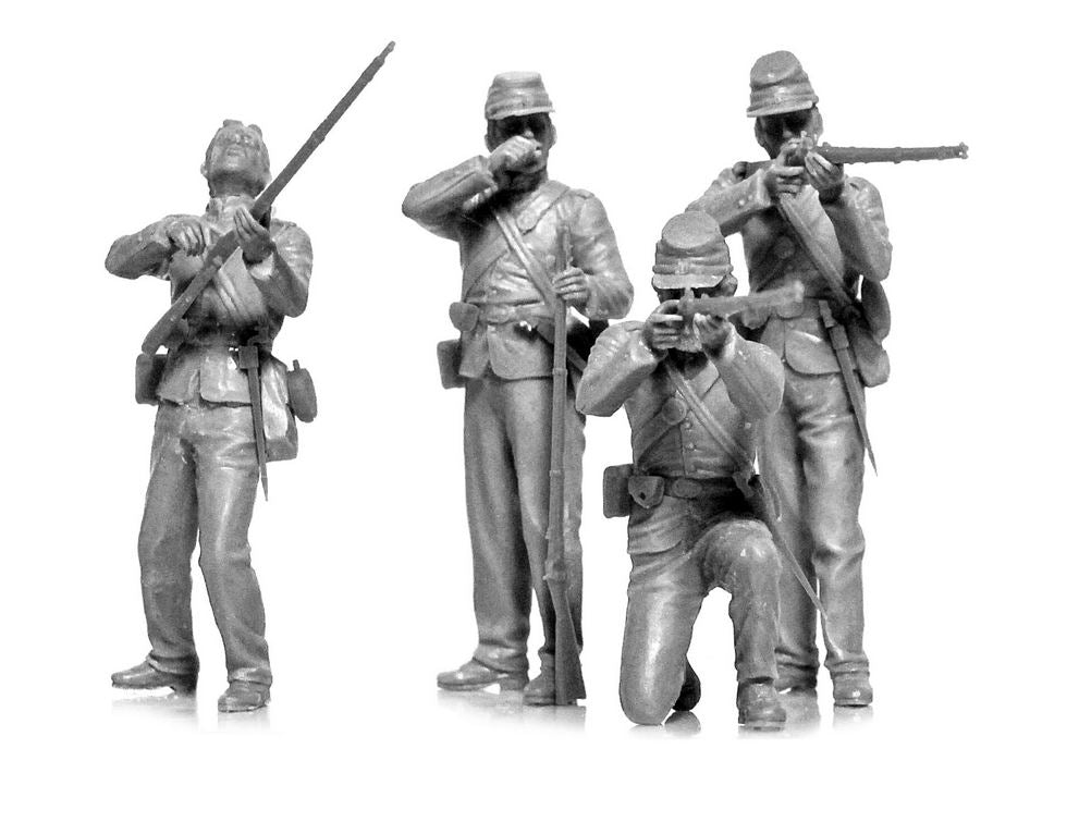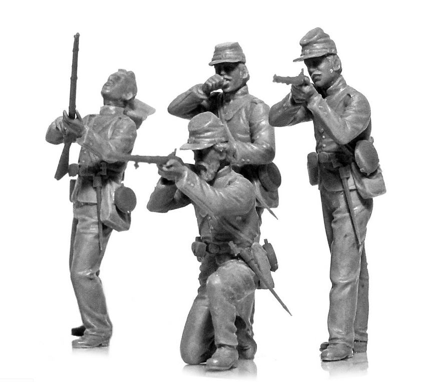 - Modelo de 4 figuras de soldados de infantería de la Unión durante la Guerra Civil Americana, en escala 1/35.