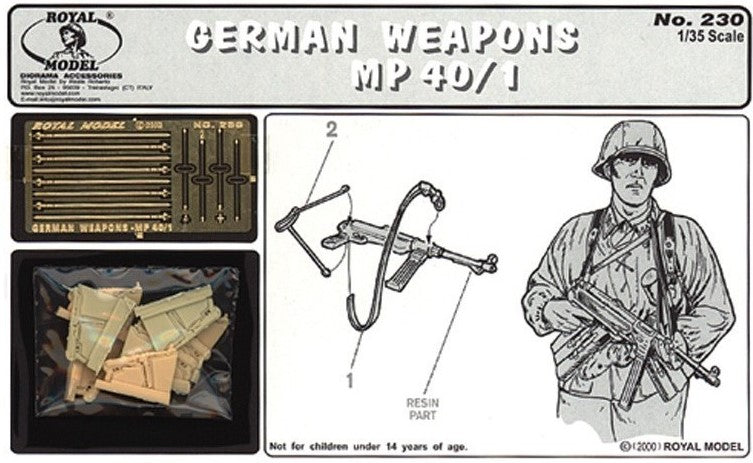 - Set de 8 ametralladoras alemanas MP40 y MP41 utilizadas durante la Segunda Guerra Mundial, en escala 1/35.
