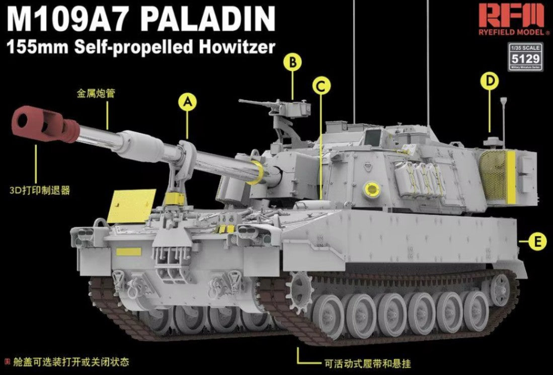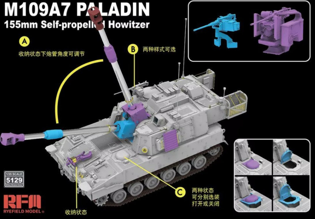 - Maqueta de vehículo de artillería autopropulsada norteamericano M109 en su versión A7 Paladin, a escala 1/35.