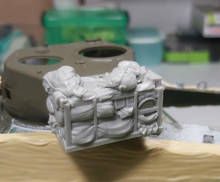 - Set de mejora con cesta de equipaje para tanque norteamericano M4 Sherman en su versión A3, en escala 1/35.