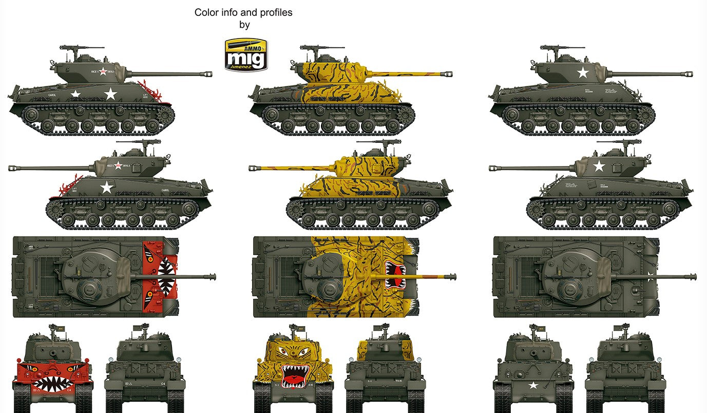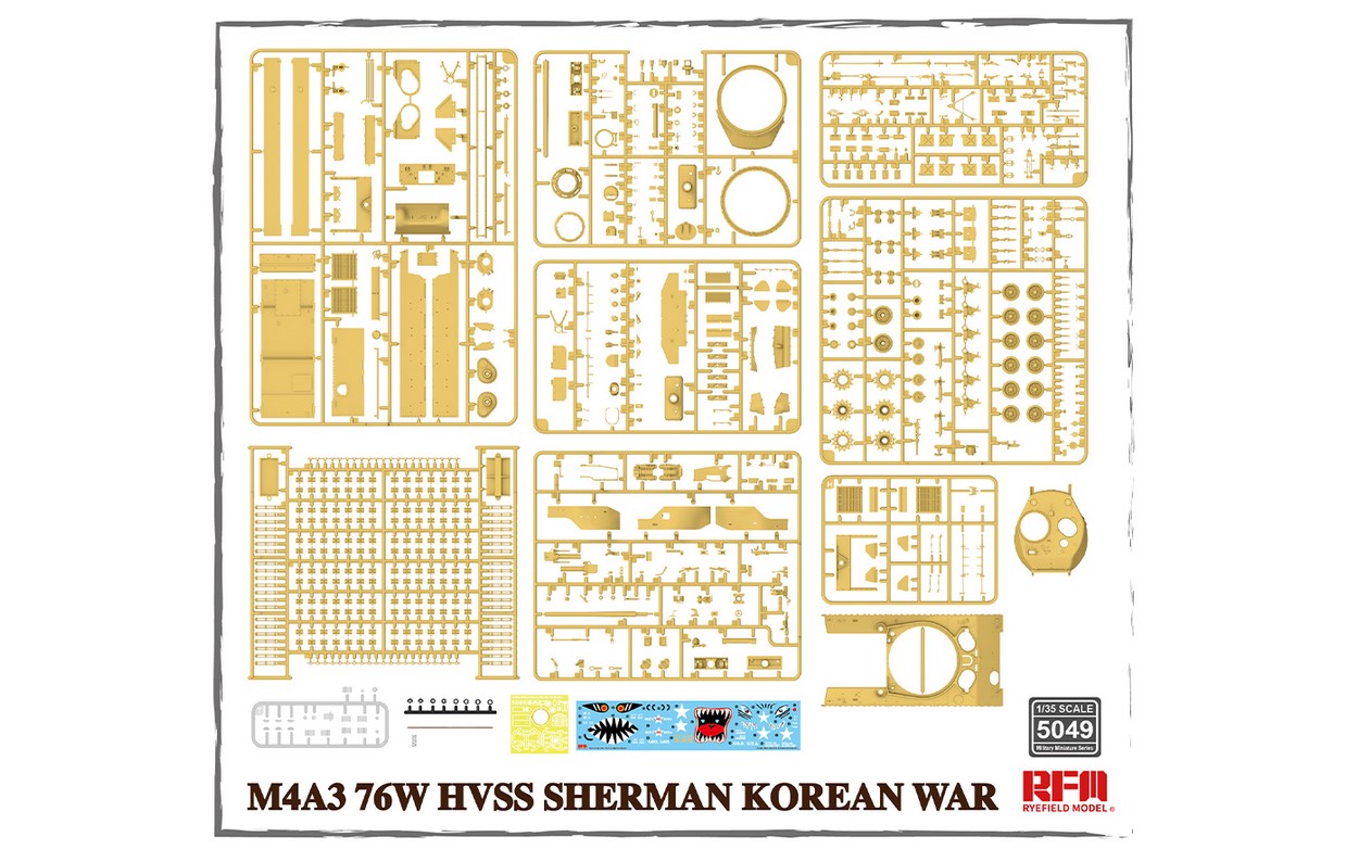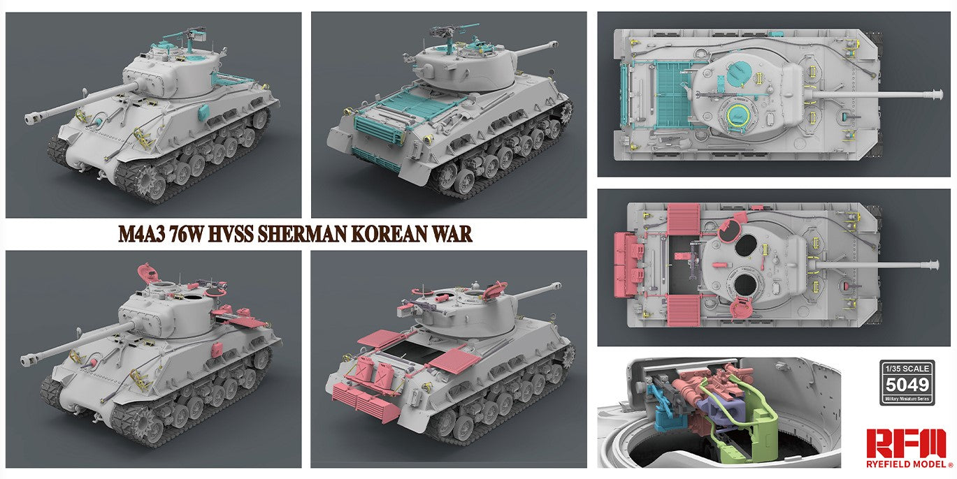 - Maqueta de carro norteaméricano M4 Sherman en su versión A3 HVSS con la configuración con la que combatió en la Guerra de Corea, a escala 1/35.