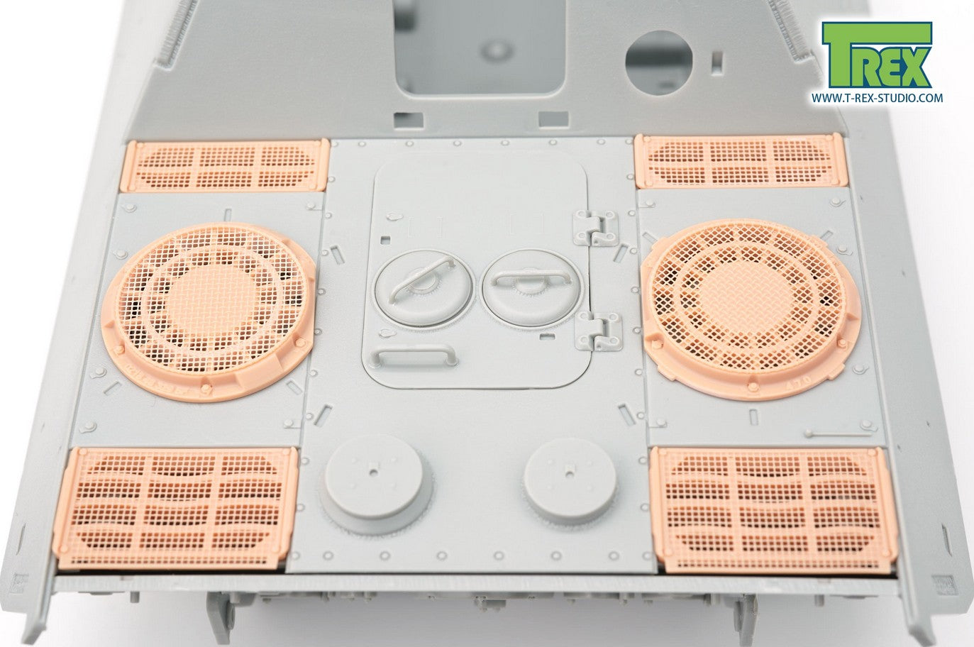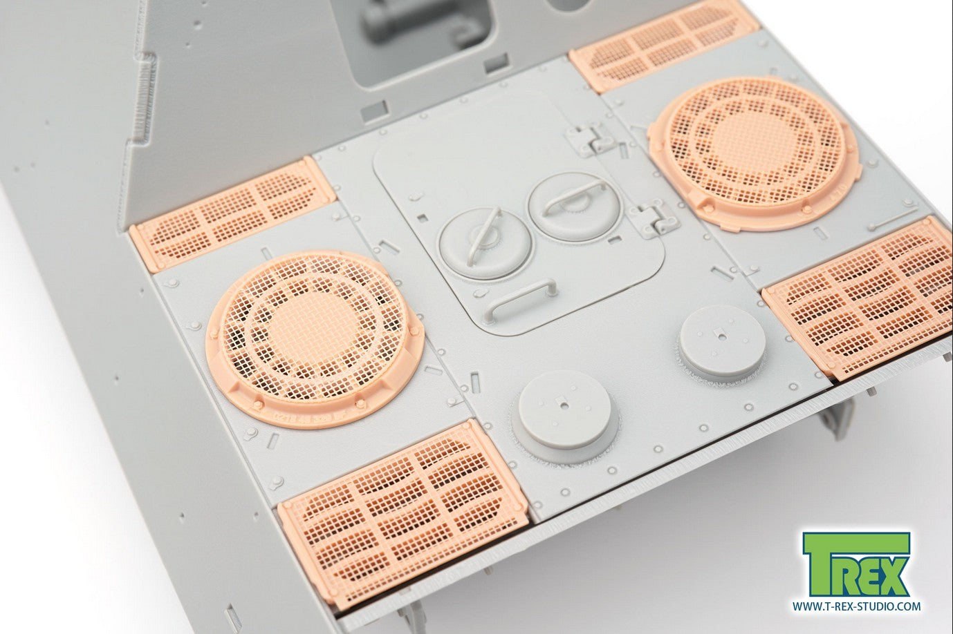 - Set de mejora de rejillas de ventilación del motor para cazacarro alemán Jagdpanther en su versión G1, en escala 1/35.