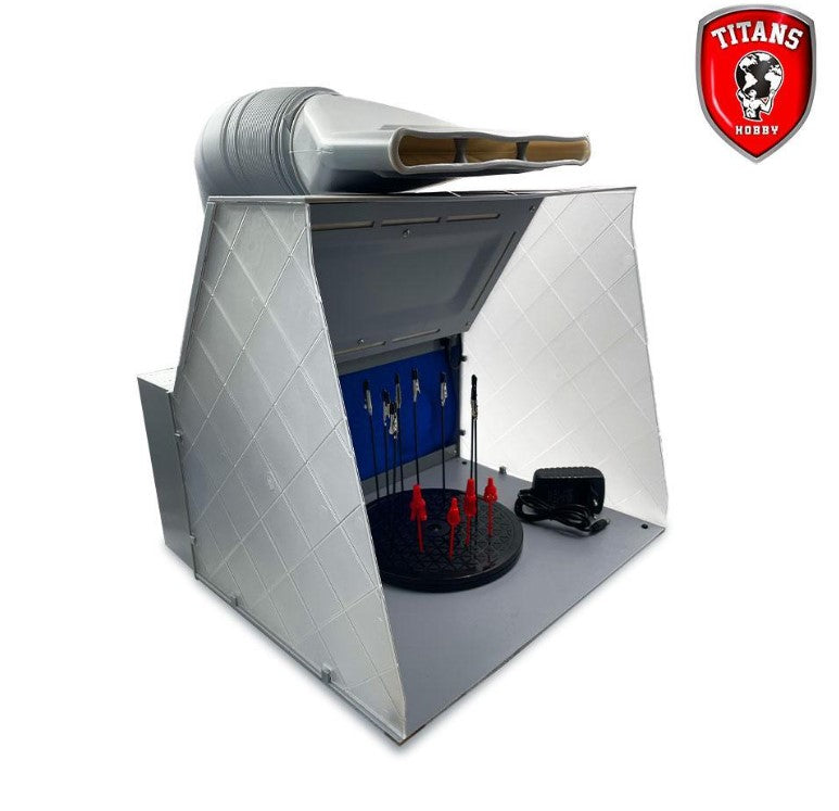 • Se incluye ventilador eléctrico para aspirar el aire mientras se pinta.