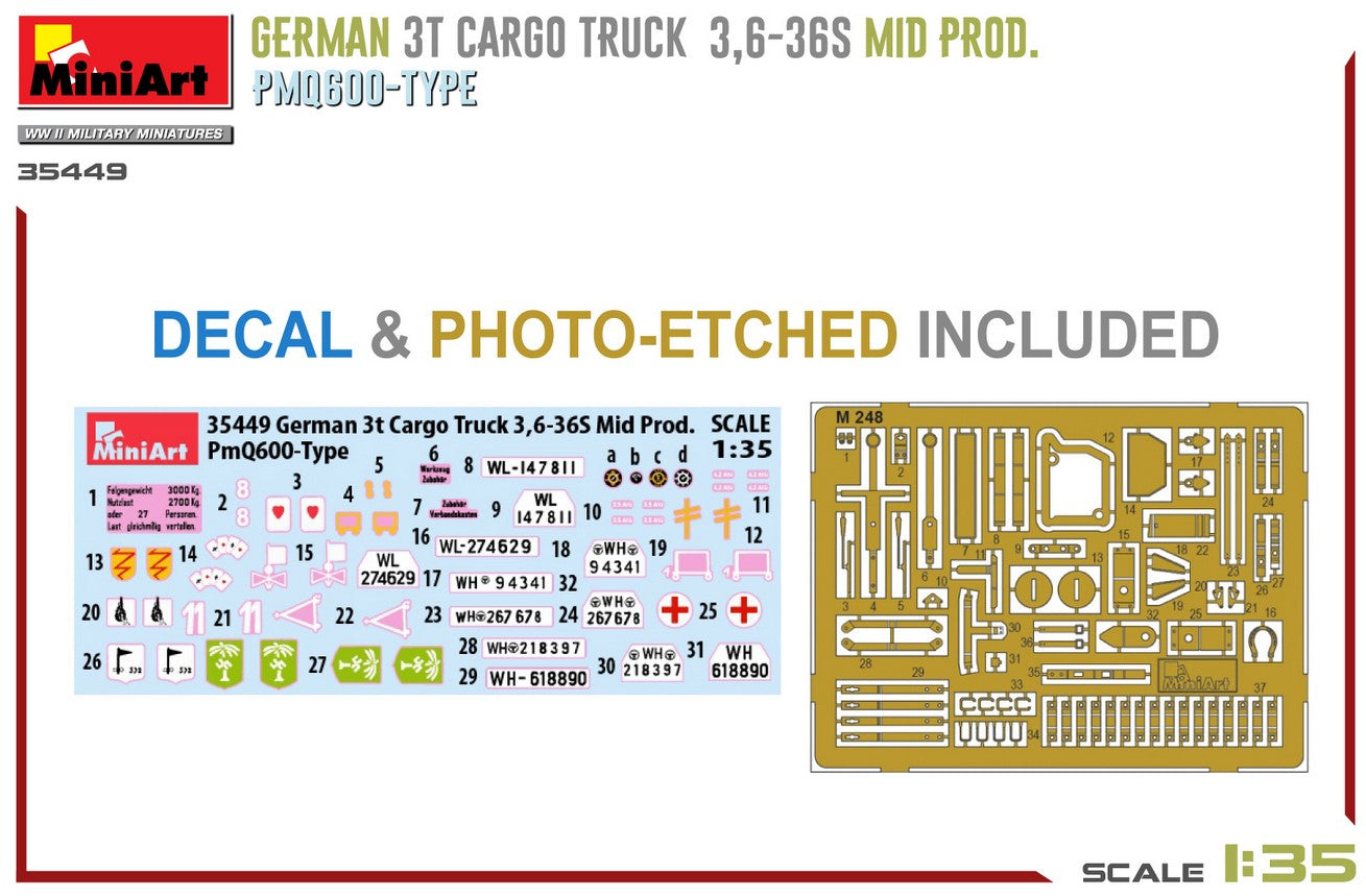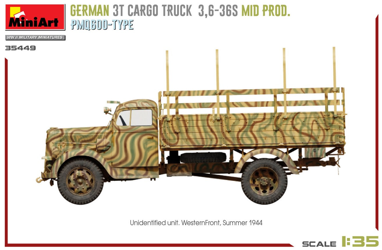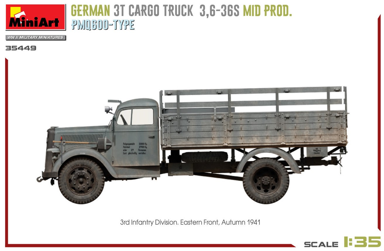 MINIART (1/35) German 3t Cargo Truck 3,6-36S Mid Prod. PMQ600-Type