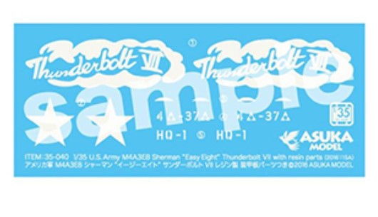 - Maqueta de carro norteamericano M4A3E8 Sherman Easy Eight Thunderbolt VII, en escala 1/35.