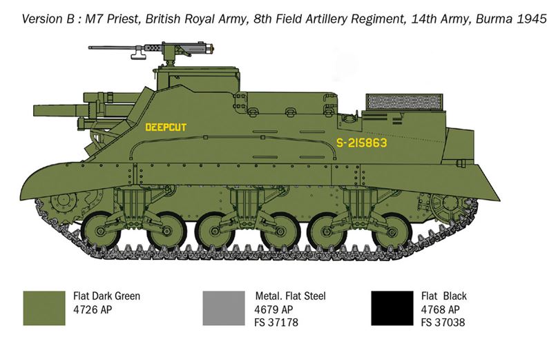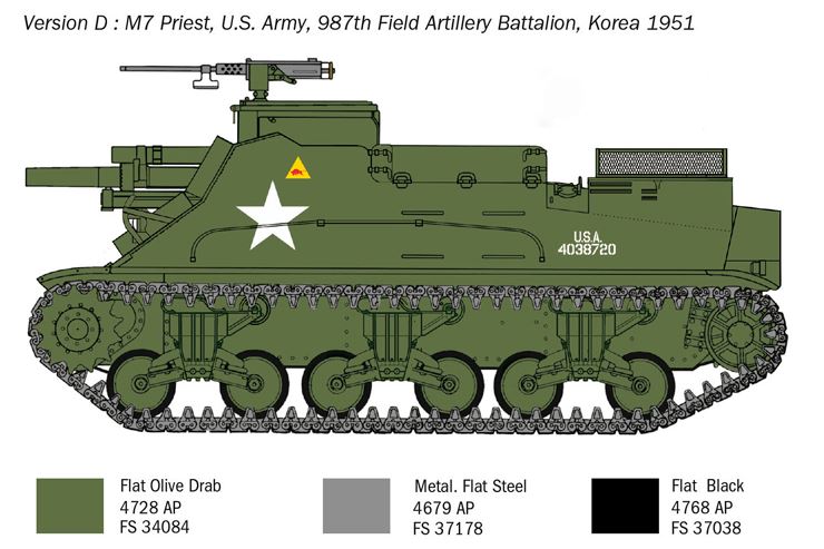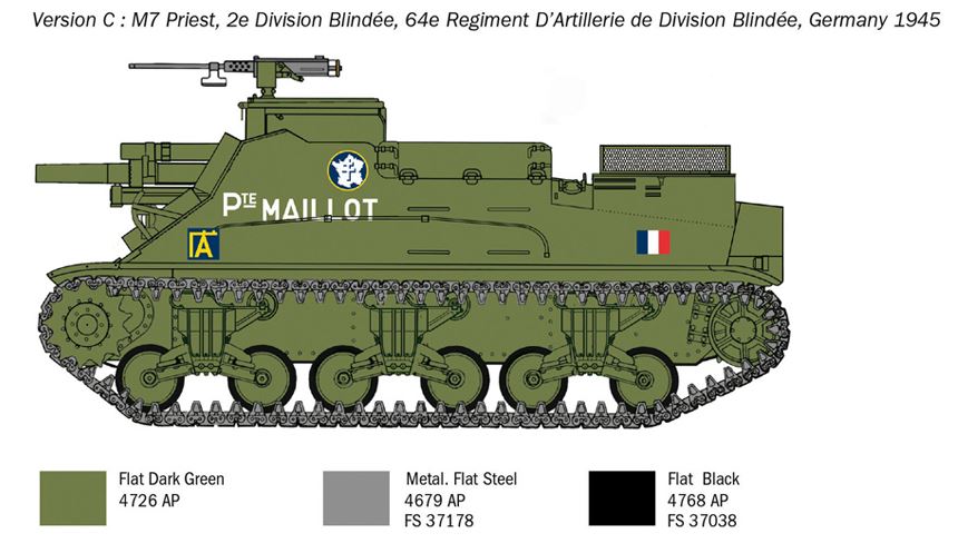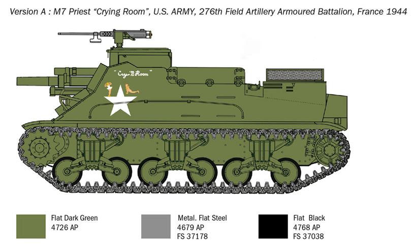 - Modelo de vehículo blindado de artillería norteamericano M7 Priest, en escala 1/35.
