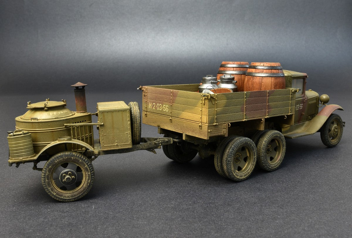 - Modelo del camión militar de transporte soviético AAA de 2T con remolque de cocina de campaña, en escala 1/35.