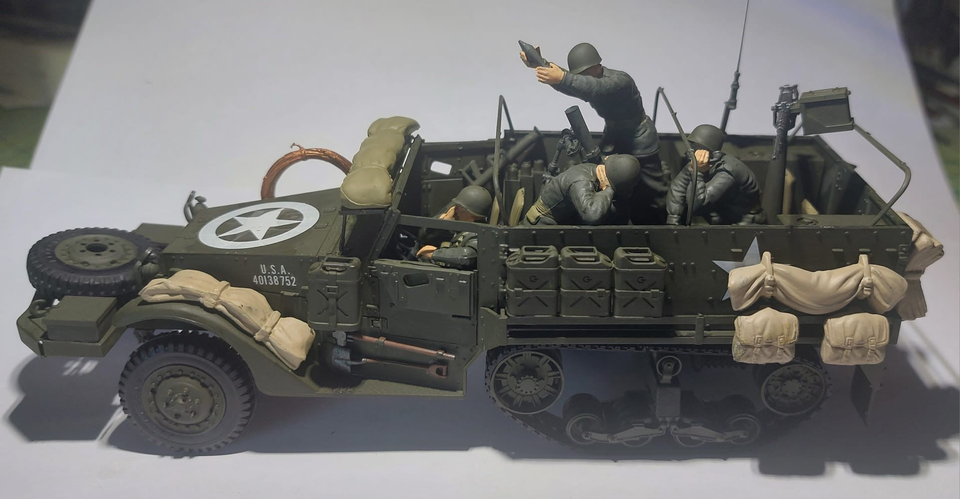 - Modelo de vehículo blindado con mortero de 81mm estadounidense M21, a escala 1/35.