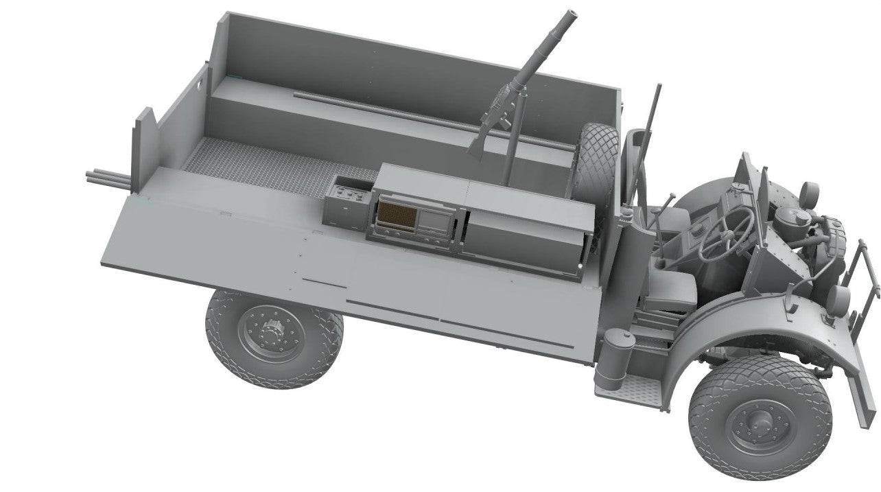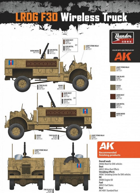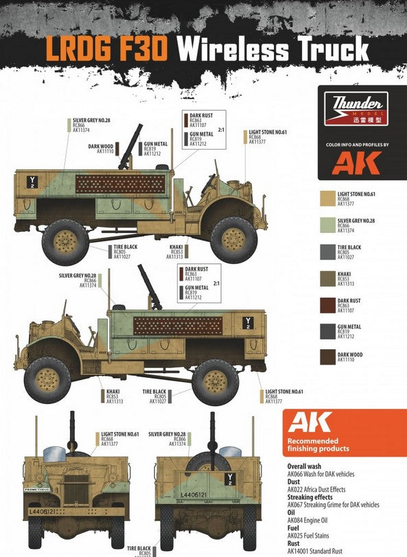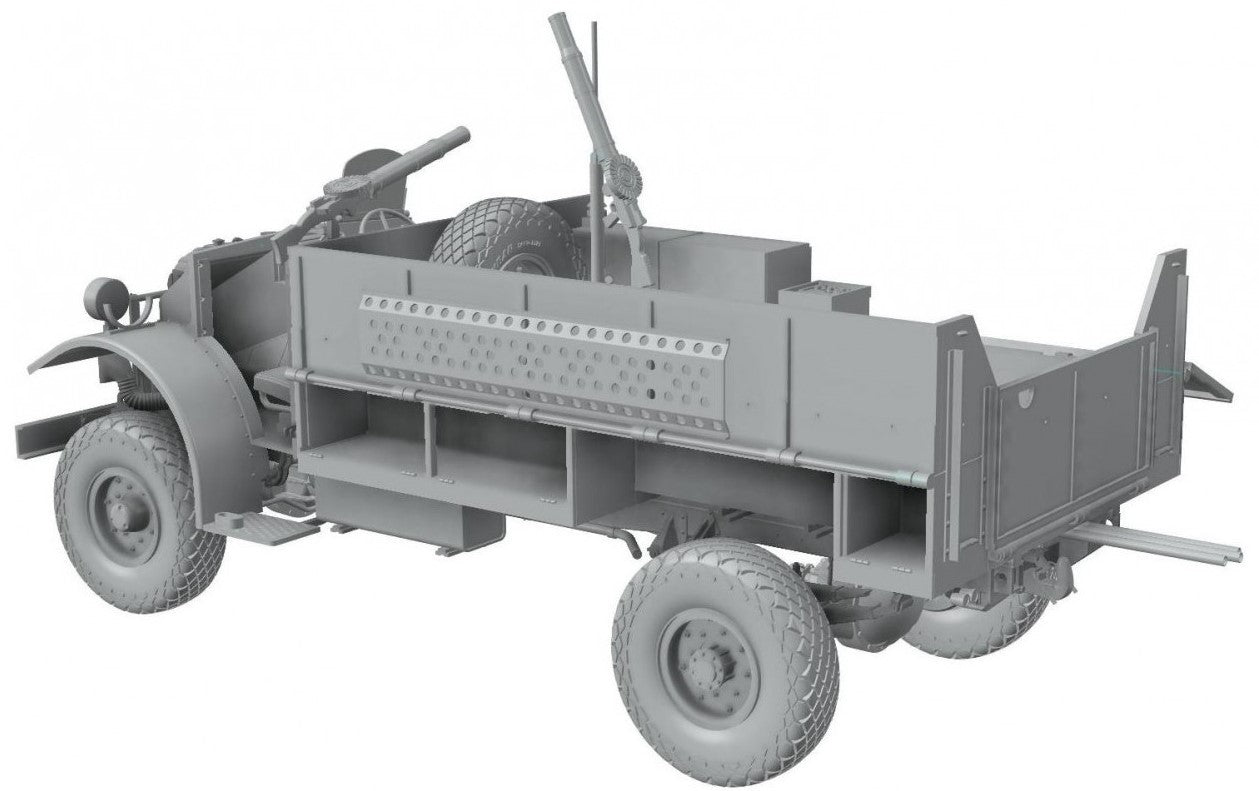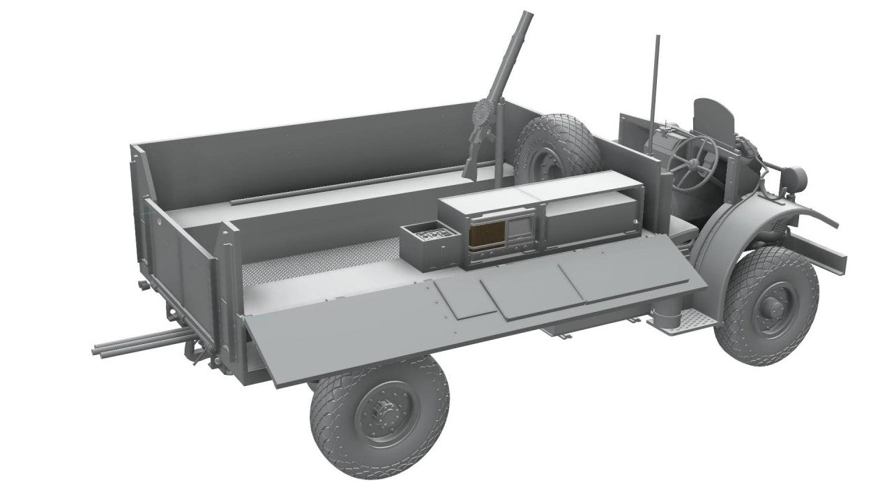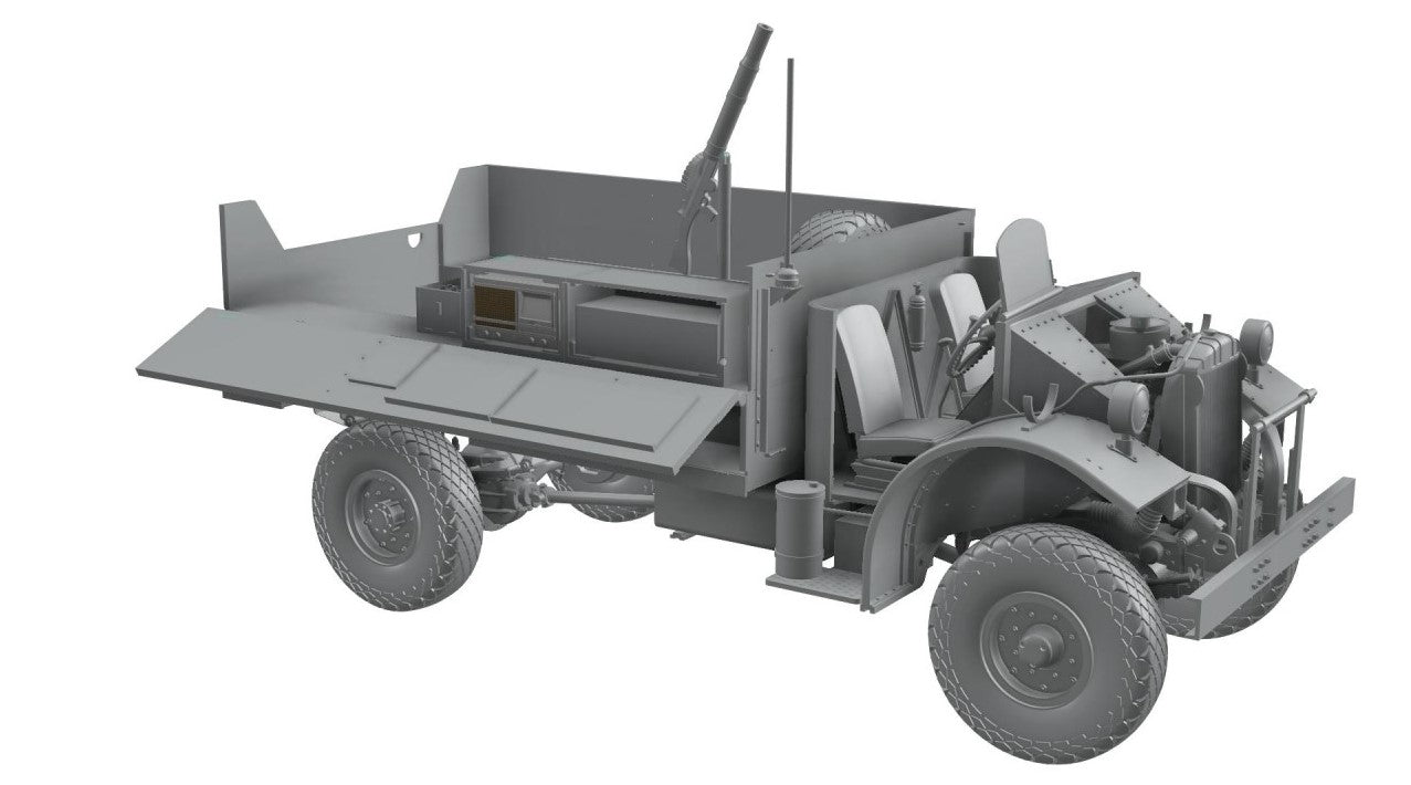 - Modelo de vehículo de transporte de comunicaciones británico Patrol Truck F30 que utilizaban las fuerzas británicas del Long Range Distance Group (LRDG) en la campaña del Norte de África, en escala 1/35.
