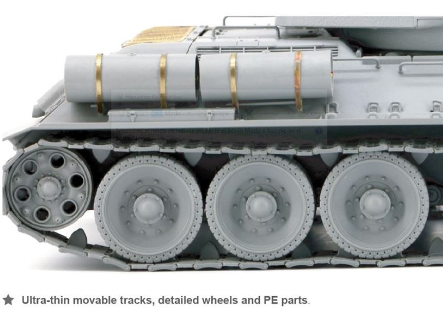 - Maqueta de carro soviético T-34/85 fabricado en la planta 112, a escala 1/35.