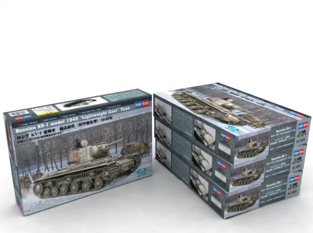 - Modelo de carro de combate soviético KV-1en su versión de 1942 con blindaje ligero, en escala 1/48.